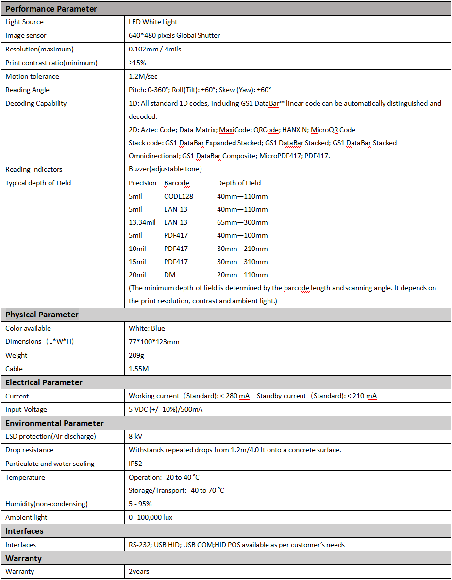 A-700+ Black or White Color Desktop 1D 2D Barcode Scanner with Global Shutter