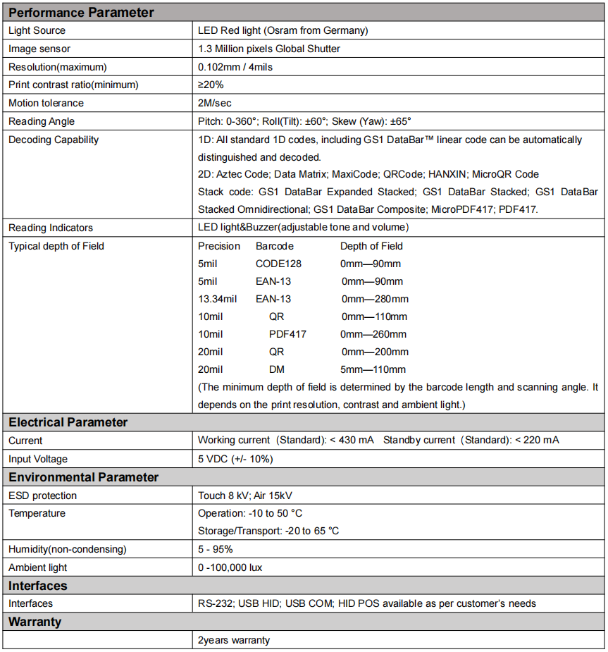 A-700+ Black or White Color Desktop 1D 2D Barcode Scanner with Global Shutter